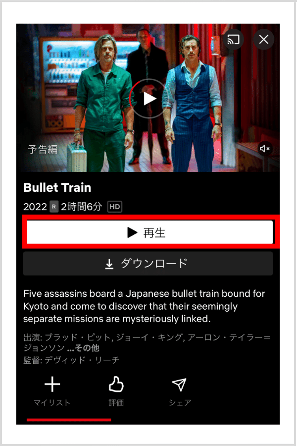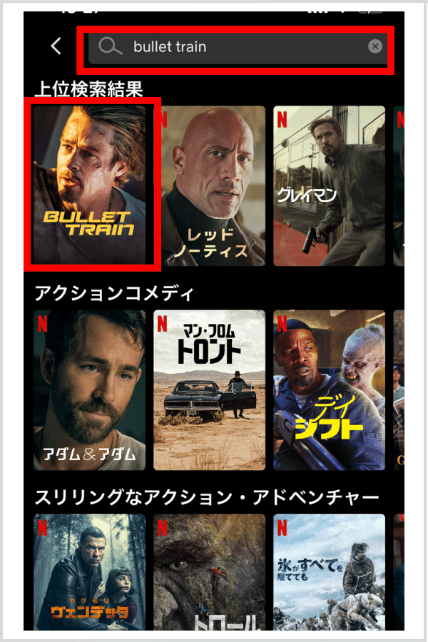 例えば、記事を最初に作成した時の2023年2月22日の時点で、日本版では視聴できない「Bullet Train」を検索すると、アメリカ版に切り替わっているので視聴することができます。
