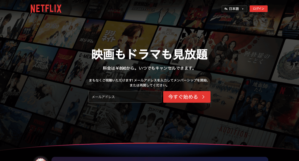 | Netflix | ◎ | 890円 | 非公開 | なし | 最大4台 | HD(720p)、フルHD(1080p)、4K+HDR |