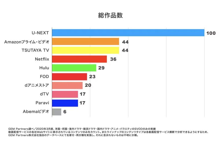 つまり、大手サービスのNetflixやAmazon Prime Videoと比較しても、見たい番組や映画が見つかる可能性が最も高いといえるでしょう。