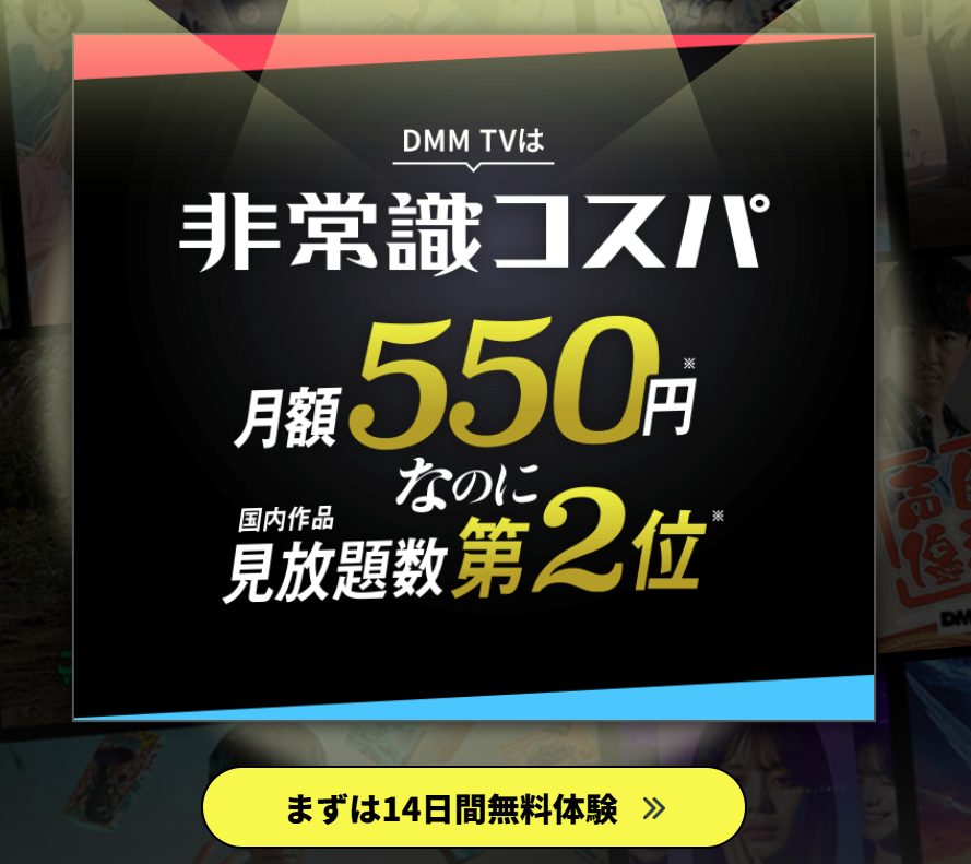 DMM TVとは月額550円(税込)の有料サービス「DMMプレミアム」で利用できるVODサービスです。