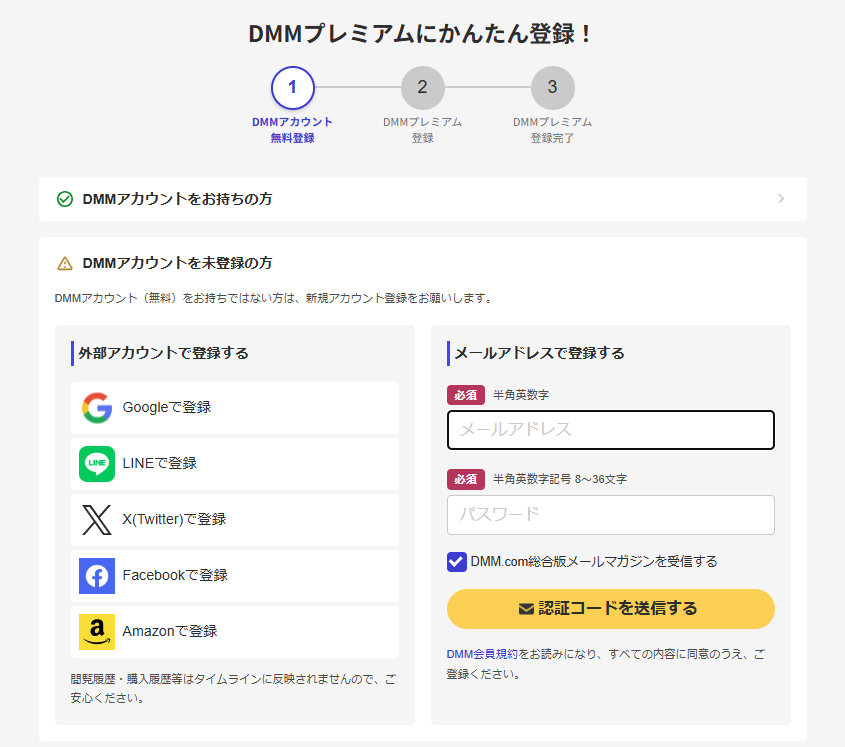 3. DMMアカウントにログイン(アカウントがない方は新規作成)