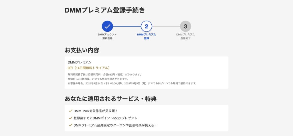 DMM TVでは初回登録者限定で14日間の無料トライアルを提供しています。