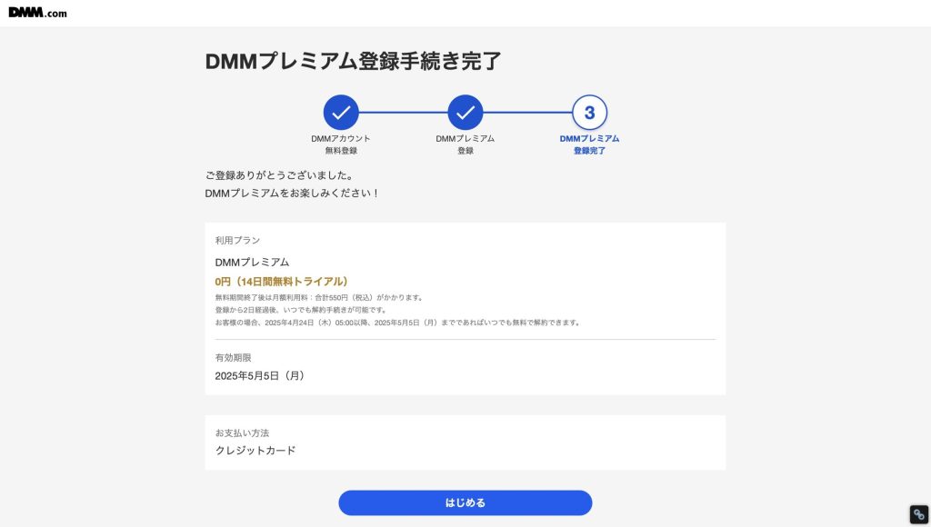 A: 無料トライアル期間中に解約すれば料金は発生せず、解約手続きもDMMアカウントの「登録情報」ページから数ステップで完了します。