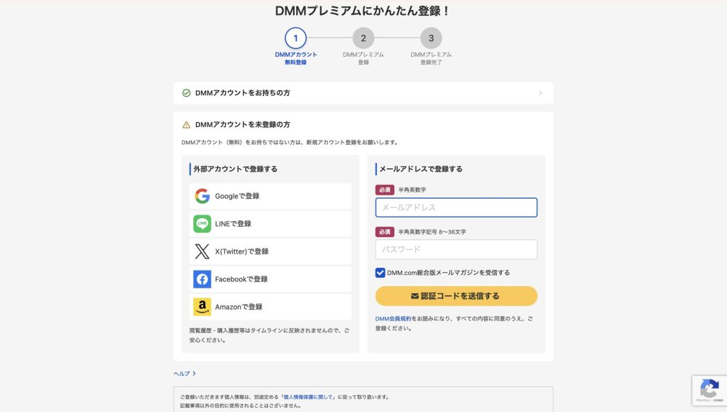 3.DMMアカウントにログインする※アカウントがない場合新規作成