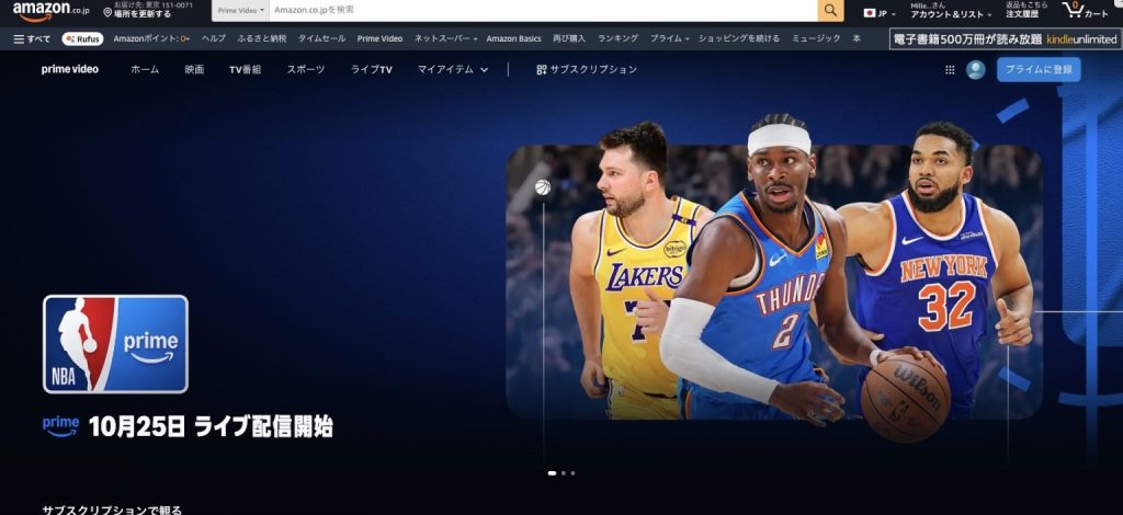 NBA on Prime(Amazonプライムビデオ)は、Amazonプライムに登録すれば誰でもNBAを視聴することができます。