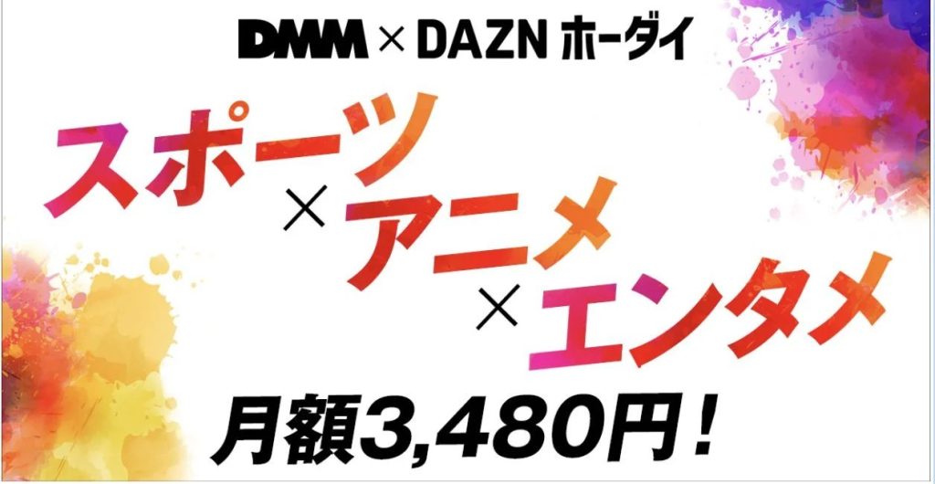 DMM×DAZNホーダイは月額3,480円(税込)で、「DAZN Standard」と「DMMプレミアム」をセットで利用できるサービスです。DMM×DAZNホーダイの主な特徴は次のとおりです。