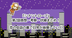 「まだ観てないけど気になる」方も、「一度観たけど整理したい」方も歓迎!この記事では第2話のポイントをわかりやすくまとめました。